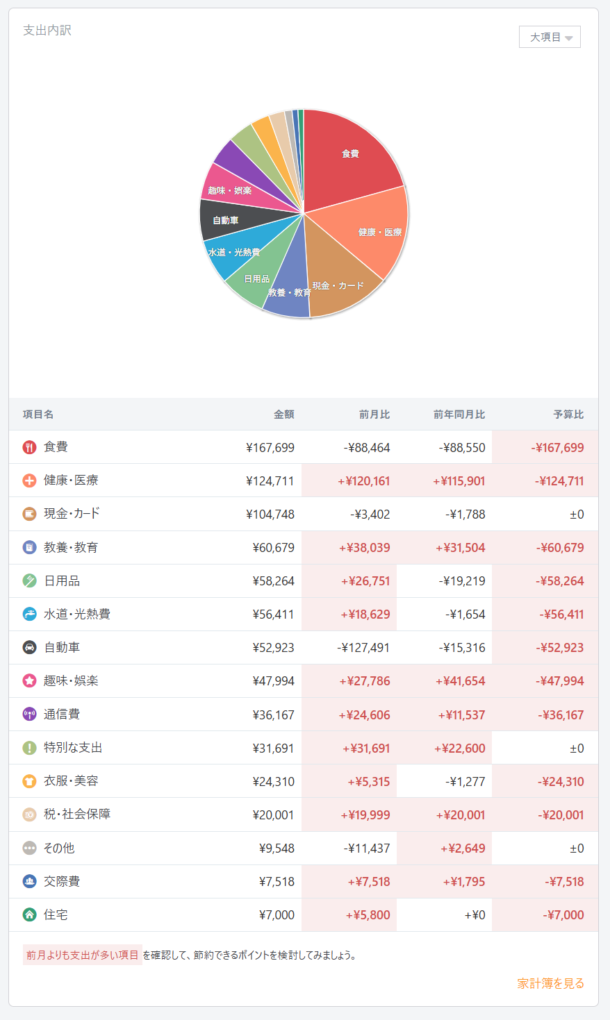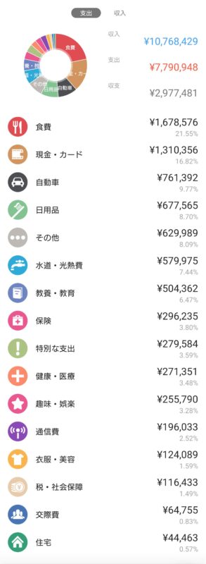 • 自販機等、領収書が出ない少額の買い物は家計簿には入っていません。その代わり毎月末に、保有している現金(財布)の分をマネーフォワードに入力し直して調整しています。